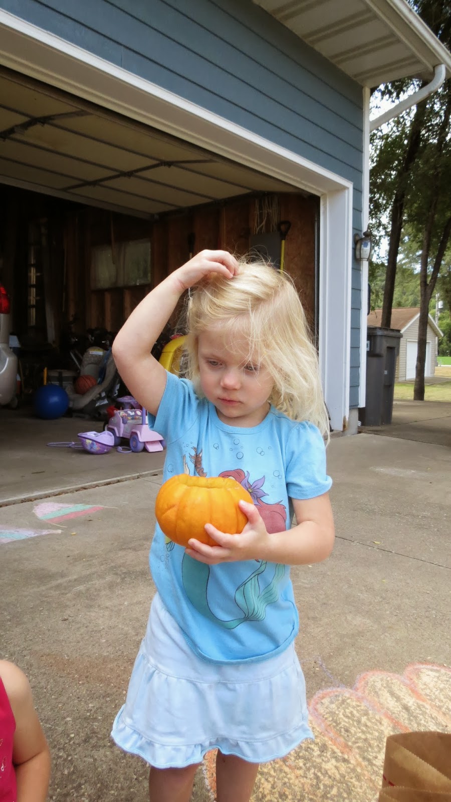 The first time Julia has enjoyed scooping out pumpkin guts! |